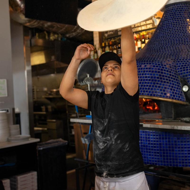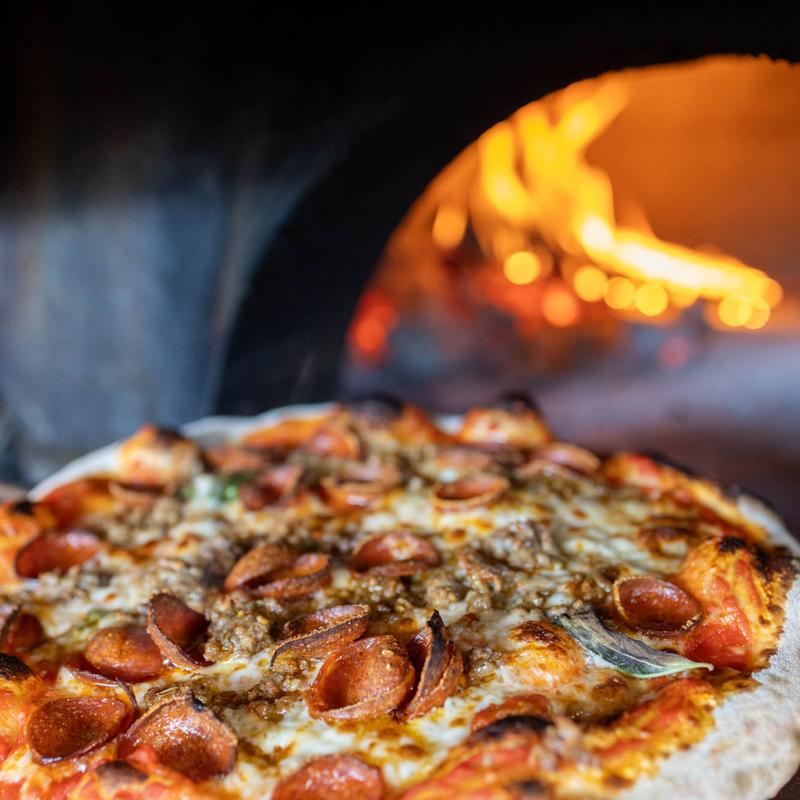 GREAT pizza and excellent service! Couldn't ask for more! Glad we stopped in to try out this place. The pizza dough is hand tossed and they have a wood fire oven which gives a great flavor.